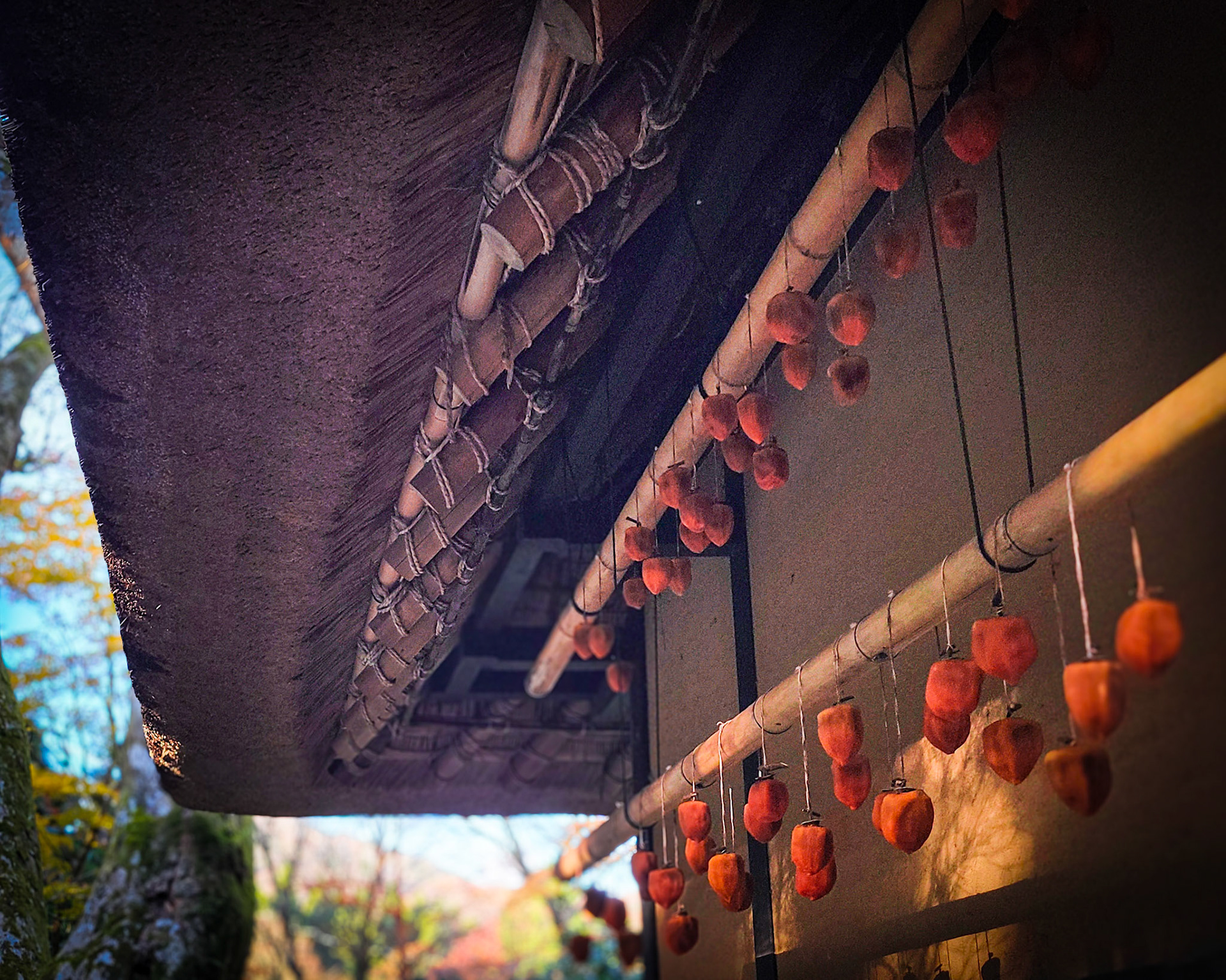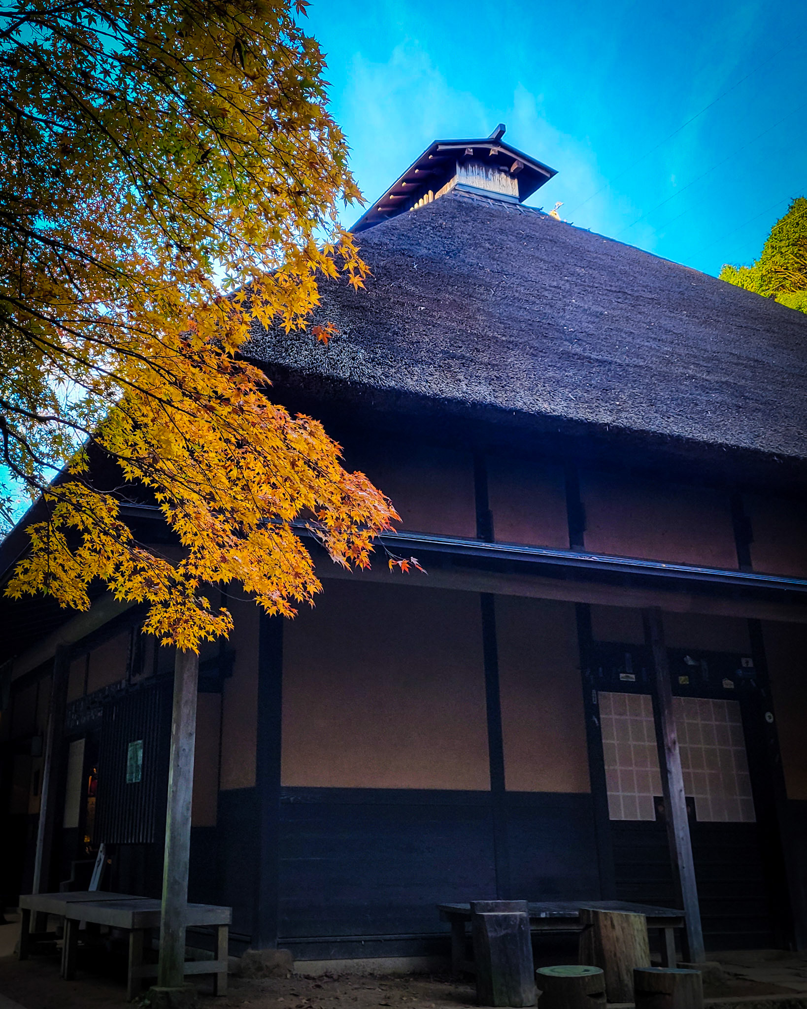 A scene of a late autumn morning at an amazake tea house in Hakone